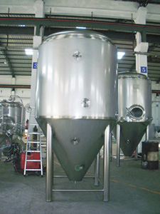 我厂设计的发酵罐为标准式罐型,这种罐型当公称容积在6m以下时罐采用夹套式。发酵气的冷却或加热,均由夹套来完成。公称容积为6m以上时,发酵气的冷却由立式盘管来担负,在罐内盘管的连接方面我们作了改进。这主要避免在罐体上多开孔,开成死角。这种连续方式在实际使用中得到满意的效果。